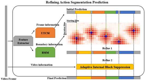 Since the introduction of ASRF [29], which proposed post-processing model outputs to mitigate over-segmentation errors, researchers have intensified their efforts to refine video sequence predictions. Several methods leverage basic boundary information of predicted actions to enhance model precision [28,29]. In contrast, our approach utilizes the informative BM map as an auxiliary instrument for the refinement of predictions.