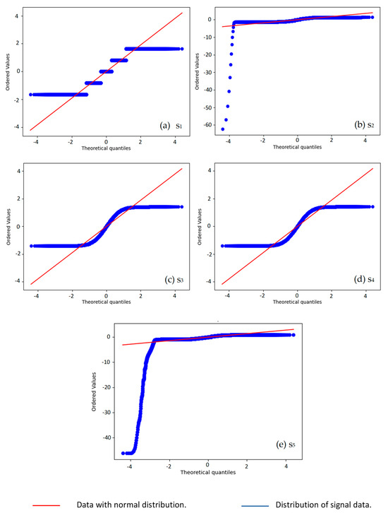 Q-Q normal distribution plots for the signals using the direct synchronization method.