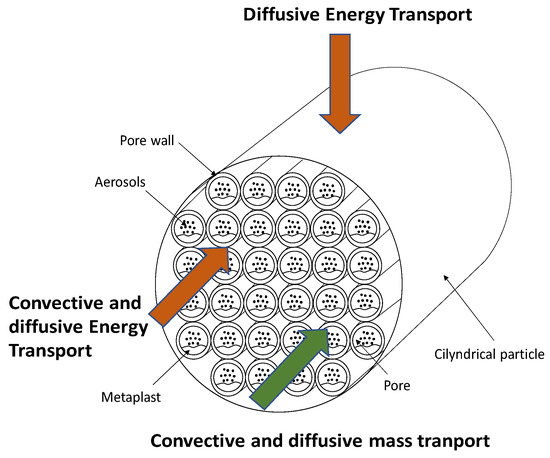 - In the radial orientation, mass transfer is deemed insignificant, while in the axial orientation, both diffusive and convective transports of mass and energy are taken into account. The liquid phase (metaplast) is assumed to be static.