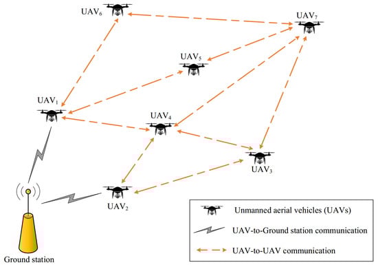 A flying ad hoc network (FANET) is a type of ad hoc network made up of unmanned aerial vehicles (UAVs). This network is rapidly progressing. UAVs have become a vital part of real-world applications, for example, wireless coverage, search and rescue, geographic mapping, and monitoring of smart products and transportation systems [1,2,3]. FANETs are a branch of mobile ad hoc networks (MANETs) and vehicular ad hoc networks (VANETs). In recent years, an attractive research area has been the participation of FANETs with other ad hoc networks, especially VANETs, to increase their efficiency and performance in smart transportation systems. In VANET, UAVs act as relay nodes to prevent frequent interruptions in communications between vehicles [4,5,6].