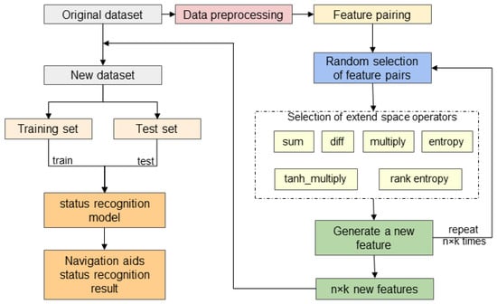Some studies focus on processing raw features to obtain a more comprehensive dataset. In [], the researchers propose an Extended Space Forest (ESF) method for decision tree construction, enhancing the performance of ensemble algorithms by introducing original features and their random combinations into the training set. Dhibi et al. [] innovatively combined multiple learning models and kernel principal component analysis for feature extraction and selection, significantly enhancing the accuracy and decision efficiency of diagnosis. Wen et al. [] enhanced the accuracy of navigation aids status recognition by generating additional features through the use of Extended Space Forests and integrating temporal domain feature fusion to capture the dynamic changes and temporal correlations of data, achieving a maximum precision of 84.17%. Sun et al. [] proposed an end-to-end intelligent bearing-fault-diagnosis method that combines 1D convolutional neural networks (1DCNNs) and LSTM networks, eliminating the need for manual feature extraction. This approach avoids errors caused by reliance on expert experience and incomplete information, achieving an average fault identification accuracy of 99.95%. Malik et al. [] carried out training by utilizing an extended feature space generated through an analysis of the original feature space, incorporating the original features, supervised randomized features, and unsupervised randomized features. Xu et al. [] employed a combination of multiscale rotation reconstruction and subspace-enhanced features in a mixed space-enhancement process, effectively enhancing the method’s performance through various feature combination strategies. Wang et al. [] refined features by comparing the overall contributions of each feature to the construction of classification regression trees in a cross-validation framework. This process aids the model in better capturing latent relationships within the data. Nonetheless, acquiring data from sensors and obtaining deep features containing more information from a limited set of features still present a certain level of complexity. Thus, the research methods employed in the literature mentioned above have certain limitations.