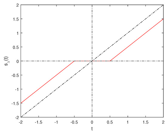 The soft thresholding operator plays a significant role in solving problem (4). However, it has the biased estimation and sometimes results in over-penalization. The behavior of the soft thresholding operator is plotted in Figure 1, and we can see that the bias between t and soft thresholding operator equals to .