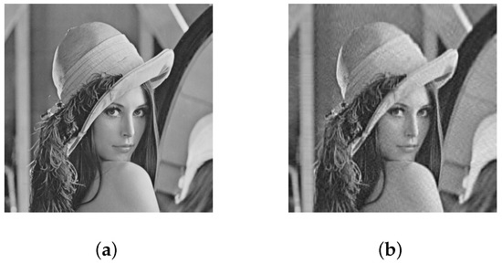 Original Lena image and its approximated low-rank image with rank 50. (a) Original Lena image. (b) Low-rank Lena image with rank 50.