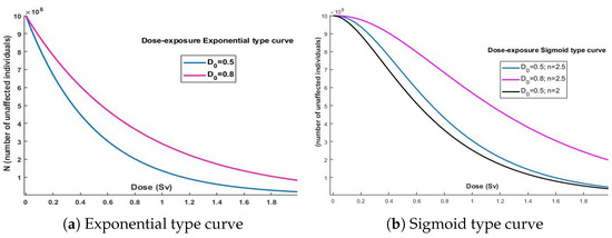 Graphical representations and approximation functions are employed to depict the dosage levels employed in the treatment of carcinomas. The exponential curve illustrates a decrease in the number of unaffected persons as the proton dose increases. Estimation of the unaffected individual influenced by the administrated dose and number of targets has the form , graphically represented in Figure 3a.