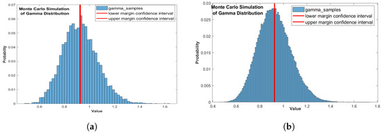 In Figure 5a, for number of samples we obtain a confidence interval of ; in Figure 5b, is considered, and a confidence interval of is obtained for () significance.