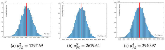 Denoting as the mean pay gap disparities after a first month, after period k, the standard deviation after first month, and the standard deviation after k period, Figure 10, Figure 11 and Figure 12 depict the MC simulations.