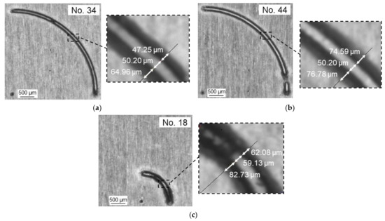 - Before measuring the object, perform camera calibration with a metal stage micrometer (OBMM 1/100, OLYMPUS, Tokyo, Japan). This procedure determined the measurement resolution (2.09 µm/pixel).