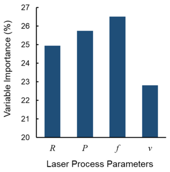 The relative importance of each input parameter in correlation with cut quality was determined using a Random Forest Method (RFM) [21]. The Random Forest Regressor model from the Scikit-learn module in Python 3.9 was specifically used for this task. Figure 5 displays the results. The cut quality was quantified using the normalized cut quality (NCQ), which was computed using the following formula: