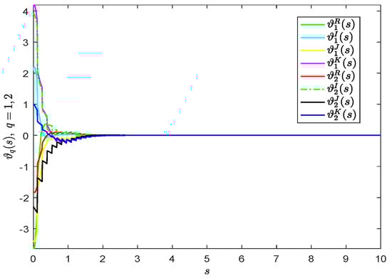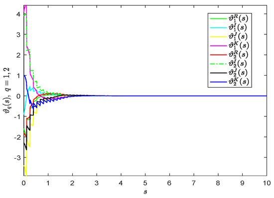 Figure 5. The evolution of synchronization errors  ϑ q ( s ) .
