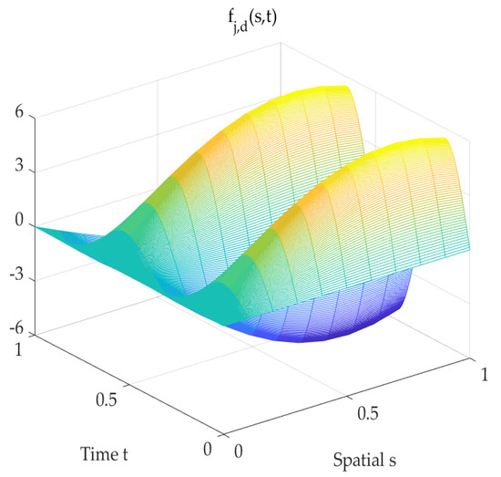 where denotes the label of the actuator agent, and , while represents a smooth and bounded region. The state, input, and output of the actuator agent are, respectively, denoted by , and . The matrix is a positive and bounded diagonal matrix, specifically with and . The matrices , , and are all bounded matrices. represents the fault signal for actuator agent , and is the Laplace operator defined on the region , i.e., . Meanwhile, the initial and boundary conditions for MAS (1) are as follows:
