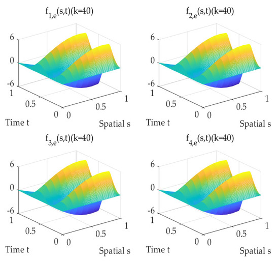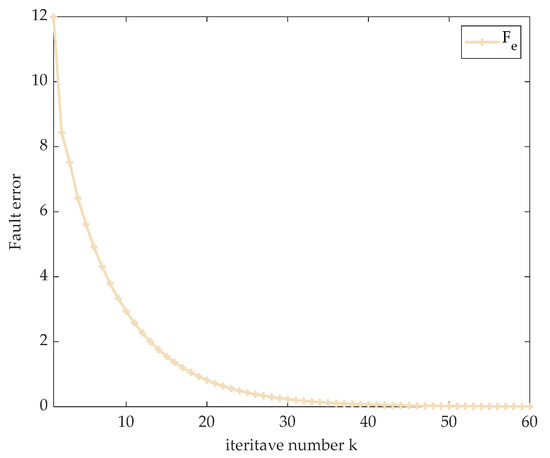 Utilizing the finite difference method for the differential equations and applying the previously designed fault estimator (11) and ILC protocol (12), the corresponding simulation results are illustrated in Figure 2, Figure 3, Figure 4, Figure 5, Figure 6, Figure 7 and Figure 8.