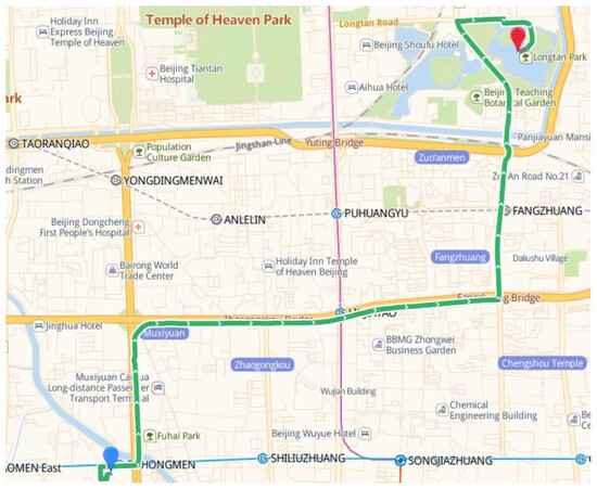 The delivery vehicles typically consist of electric bicycles, and their routes primarily encompass secondary and branch roads, such as the auxiliary lanes adjacent to main thoroughfares and local streets shared by motor vehicles and electric bicycles. The congestion status of secondary roads and branches is the main basis for calculating the actual driving speed of delivery vehicles. The real-time traffic query API of Baidu Map (Beijing Baidu Netcom Science Technology Co., Ltd., Beijing, China) can obtain the congestion status of secondary roads and branches at different times.