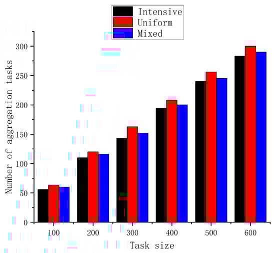 Comparison of the number of aggregated tasks under different distribution densities.