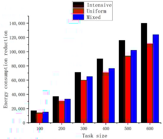 Comparison of reduced task execution energy consumption at different distribution densities.