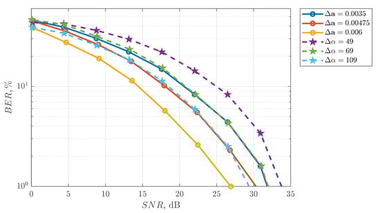 Let us perform a classical BER analysis using direct error counting for the ranges of parameters and values given in Table 1. It should be noted that we used a relatively small range of parameters for the system, resulting in relatively low noise immunity [54], because in this study, we focused on investigating a CCS with a certain low level of noise immunity with the purpose of disclosure of the most covert modulation technique.
