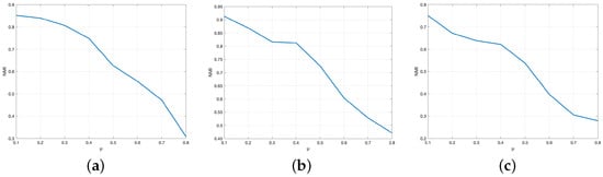 In Figure 3, when the interlayer dependence tensor p is closer to 1, the corresponding NMI value becomes larger and larger. This shows that the interlayer dependency tensor controls the similarity of the common communities in different layers. The greater the interlayer dependence tensor, the higher the degree of community integration between different layers. In this case, the algorithm is more accurate in detecting the shared communities and exclusive communities in the multiplex network.