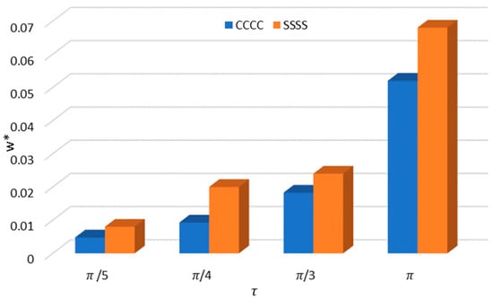 Figure 7 shows the influence of the sector plate angle on the non-dimensional deflection for different boundary conditions. It is noticed that by increasing the sector angle, the deflection increases. Moreover, it can be seen that the difference between the boundary conditions is almost more significant at larger angles.