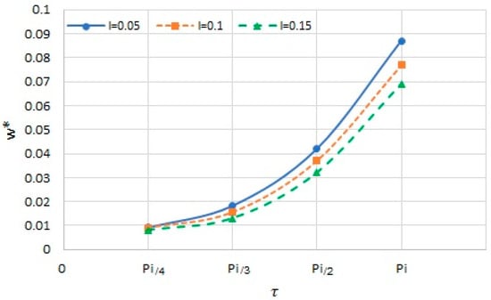 Figure 8 illustrates the influence of the strain gradient parameter with different sector plate angles on the non-dimensional deflection for the clamped boundary conditions. As can be noticed, by increasing the strain gradient parameter, the maximum deflection of the nanoplate decreases (because increasing the strain parameter causes an increase in the stiffness of the nanoplate; therefore, the deflection of the plate decreases). Additionally, a similar result can be found in Ref. [18].