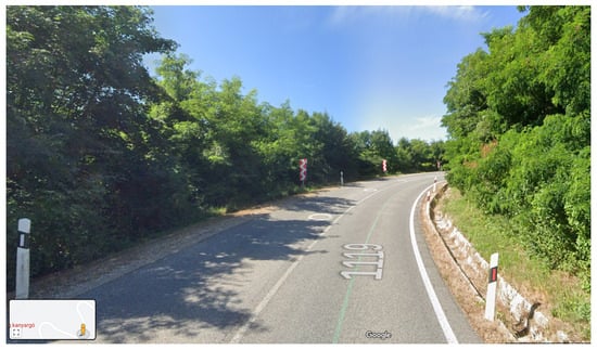 As can be seen in Figure 3, the view even gives the driver the feeling that he or she should get closer to the center line to see better. However, as seen in Figure 4, right in the middle of the curve, one must continue turning, and the curve visibility is still not high. Thus, a serious accident can occur if the driver keeps the vehicle too close to the center of the road and oncoming drivers make the same mistakes.