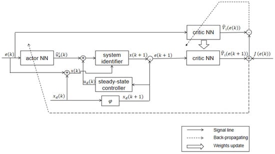 As is widely known, nonlinear system control is an important topic of control fields, especially for discrete-time nonlinear systems, and is difficult for traditional control methods. In recent decades, many different approaches to discrete-time system control have been proposed, such as adaptive control [1], fuzzy control [2], and PID control [3]. Optimal tracking control, one of the effective methods for nonlinear systems, has many practical engineering applications [4,5,6]. Its purpose is to design a control law that not only allows the system to track the desired trajectory but also minimizes a specific performance index. It is of great theoretical significance to explore the optimal tracking optimal control of nonlinear systems. Although dynamic programming is an effective method for solving optimal control problems, there is the problem of “curse of dimensionality” when dealing with relatively complex systems [7,8]. Moreover, it is difficult to solve the HJB equation derived from the optimal control of nonlinear systems, which has no analytical solution.
