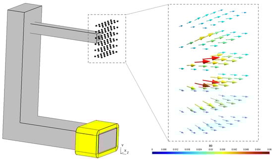 For this example, the given magnetic flux density in the target zone is first computed using a sample ferromagnetic shape, as represented in Figure 4. This corresponds to the magnetic flux density produced by a bar of dimensions 8 cm cm cm.