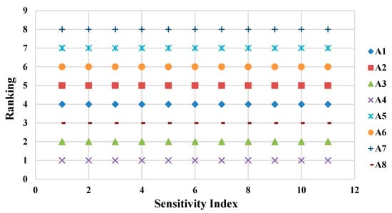5.1.3. Sensitivity Analysis on IVF-WASPAS Method