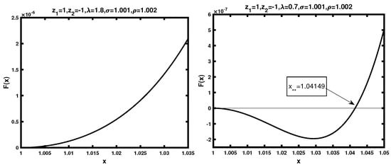 Note that and . It is not difficult to conclude that there exists a unique , such that , for , and for . Similar discussion can be applied to the case with . □