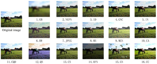 In daily life, image content is the key factor that determines whether an image captures attention and brings pleasure. However, unlike the diverse types of distortions introduced by random overlays and random distributions in natural image distortions in real-life images are generated based on people’s subjective ideas. The content of these images is guided by human thoughts, often resulting in many similar or even identical images. Therefore, in the contrastive learning training of the content recognition module, when constructing a negative sample queue based on the MOCO-V2 framework, it is common to encounter negative sample pairs that contain similar content, leading to optimization mistakes. To address this, we train the content recognition module with a MOCO-V3 framework. Furthermore, to help the model gain a more comprehensive and complete understanding of image content, during the training of the content recognition module, for each image in batch, we select two out of the sixteen image enhancement methods (as shown in Figure 4) that do not affect the image content to process the image and generate positive sample pairs. Additionally, we apply full cropping and pixel scaling to create image patches. After two sets of images are formed, they will be served as dictionary collections to each other.