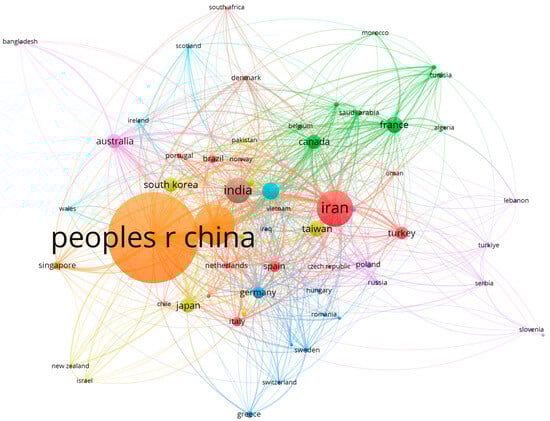 Scholars from across the world are collaborating to expand and develop their research interests. This trend can be viewed using the location co-authorship analysis in VOSviewer. Figure 2 presents a location co-authorship diagram of studies on genetic algorithms in logistics and supply chain management. China has the largest international collaboration rate with a total link strength of 1221, followed by the United States, Iran, England, and India, with total link strengths of 965, 595, 431, and 369, respectively. The strongest international collaboration is between China and the United States with a link strength of 337, followed by China and England with a link strength of 101.