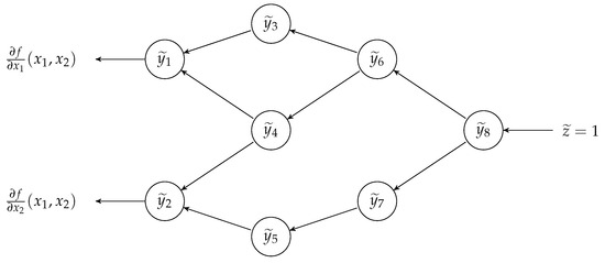 where the term “parent of” refers to the computational graph of f (see Figure 1). Then, we can build another “composition graph” with the same connectivity of the one of f but with elementary operations given by (1). Therefore, given a vector , we can compute the value of the derivative with the following steps: