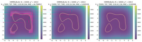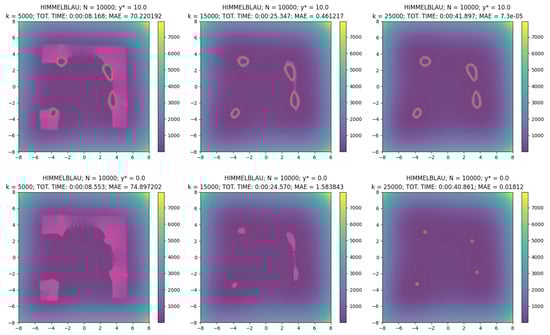 Now, for each k = 5000, 15,000, 25,000, in Table 4 we report the computation time and the Mean Absolute Error (MAE) of the points with respect to the target value , i.e.,