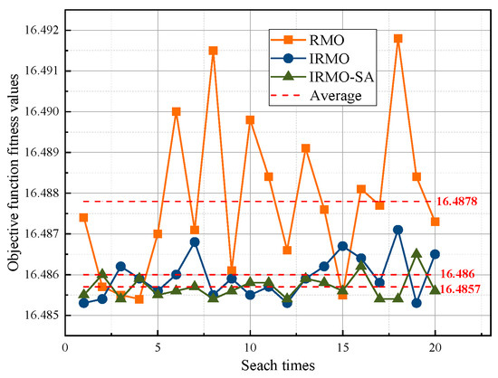 In this paper, Equation (3) is used as the objective function of the IRMO-SA algorithm as follows: