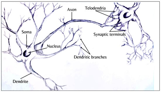 The Hebbian theory is a neuroscientific concept that describes a fundamental mechanism of synaptic plasticity. According to this theory, the strength of a synaptic connection increases when neurons on both sides of the synapse are repeatedly activated simultaneously. Introduced by Donald Hebb in 1949, it is known by various names, including Hebb’s rule, Hebbian learning postulate, or Cell Assembly Theory. The theory suggests that the persistence of repetitive activity or a signal tends to induce long-lasting cellular changes that enhance synaptic stability. When two cells or systems of cells are consistently active at the same time, they tend to become associated, facilitating each other’s activity. This association leads to the development of synaptic terminals on the axon of the first cell in contact with the soma of the second cell, as depicted in Figure 1 [].