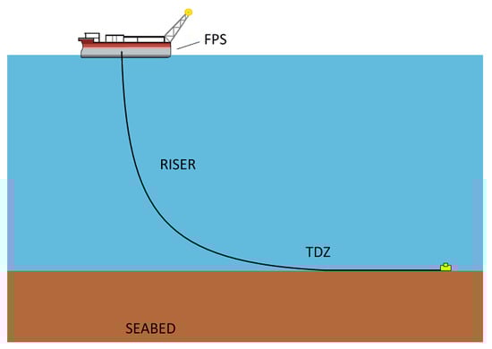 In deepwater scenarios, the top section of the riser is subjected to high tensile loads, which combine with significant bending moments. Moreover, the contact region with the seabed touchdown zone (TDZ) experiences high hydrostatic pressures associated with bending moments. Altogether, this scenario is highly favorable to fatigue failure that may be aggravated by stress corrosion cracking (SCC) [6]. Indeed, the performance of flexible risers in the offshore fatigue context is not a recent concern [7,8,9]; codes, standards, and a set of theoretical studies have been developed to establish the best practices for flexible risers analysis [3,10,11]. The main difficulties consist of knowing their design limits and, more importantly, determining the loads to which they would be subjected in service.