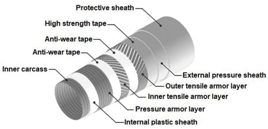 - API. API RP 17B: Recommended Practice for Flexible Pipe, 5th ed.; American Petroleum Institute: Washington, DC, USA, 2014. [Google Scholar]