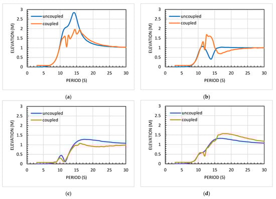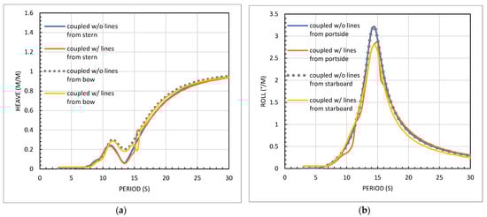 Uncoupled methodologies use numerical tools based on formulations that do not consider the nonlinear interaction between the hull and the lines. The first step involves analyses to obtain the vessel’s motions in its six degrees of freedom, i.e., the three translations (Surge, Sway, and Heave) and the three rotations (Roll, Pitch, and Yaw). In these analyses, the mooring lines and risers are represented by simplified models (e.g., as scalar coefficients), obtaining vessel motions in terms of static offsets, low frequency (LF), and wave frequency (WF) components. The latter is expressed as transfer functions or Response Amplitude Operators (RAOs) [17,18,19], a set of coefficients that linearly correlates the first-order vessel motions with the wave amplitudes, assuming a linear relationship between the wave amplitude and the resulting wave forces or motions for each given wave period. The vessel RAOs are usually calculated in the frequency domain, employing programs based on radiation/diffraction models. The vessel is modeled as a three-dimensional rigid body assuming small unsteady motions relative to the body’s wavelength and relevant length scales. The panel method models the body surface and calculates the body’s hydrodynamic pressure, loads, and motions, as well as the pressure and velocity in the fluid domain [20].