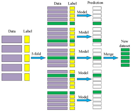 The stacking model was first proposed by Wolpert [52] in 1992; its core idea is to model on a stacking of original data. As shown in Figure 9, the base classifier learns the original data and gets the prediction results which are stacked to build a new dataset, and then the new sample data are given to the meta-classifier for fitting to output the final prediction results.