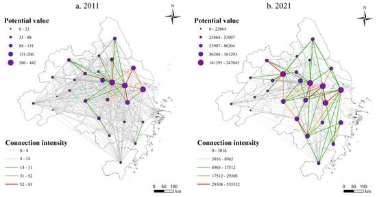 4.2. Spatial Connection Patterns of Coupling Coordination Degree