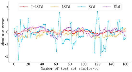To compare the prediction performance of different methods, the prediction results are evaluated by using three evaluation indexes (MSE, MAE and RMSE), as shown in Table 2. The SVM has a large error compared with the other three methods. The prediction accuracy of the I-LSTM method is compared with ELM and LSTM. MSE is reduced by about 46% and 38%, respectively. MAE is reduced by about 25% and 21%, respectively. RMSE is reduced by about 27% and 24%, respectively.