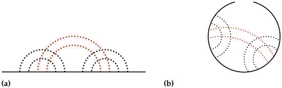Once the matrix framework is recovered, it is possible to evaluate such integrals in terms of diagrams, by using the already mentioned Wick’s theorem. Moreover, thanks to this graphical approach we can also describe pseudoknots in terms of topological quantities, namely the genus. Figure 4 depicts the standard way to represent a well-known pseudoknot, called kissing hairpin [42]. This picture can be used to derive (by stretching the backbone) two other useful graphs, namely the stretching (or arc) diagram (Figure 6a) and the circle (or disk) diagram (Figure 6b).
