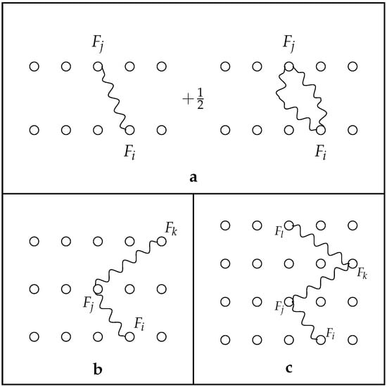 This graph formalism can be used to compute the coefficients , , and of Equation (27) as represented in Figure 10.