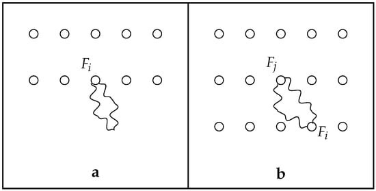 Thus, Wick’s theorem provides a practical way to compute n-points functions as we show in the latter formulas for the two-points and four-points functions (the generalization is quite obvious). Now, the combinatorial computations arising from Wick’s argument can actually be graphically represented. In particular, let us consider the right-hand side of Equations (12) and (13). They can be depicted as graphs, where the indices of the points in the m-point function become the vertices and and each term becomes an edge from vertex to vertex . Practically speaking, it turns out that it is possible to visualize such an expression by means of graphs, as we propose in Figure 2 and Figure 3.