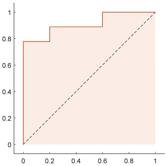 The ROC curve [] is a plot showing the performance of a binary classification model at varying threshold values (an example is shown in Figure 9). The AUC of a ROC curve is a number between 0 and 1 and represents the probability that the classifier will rank a randomly chosen positive instance higher than a randomly chosen negative instance (thus a high value of AUC is desired).