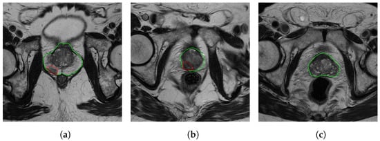 In Figure 13 we show some examples containing prostates and, in some cases, also the cancers, discussing in addition the results of the prediction of the best models.