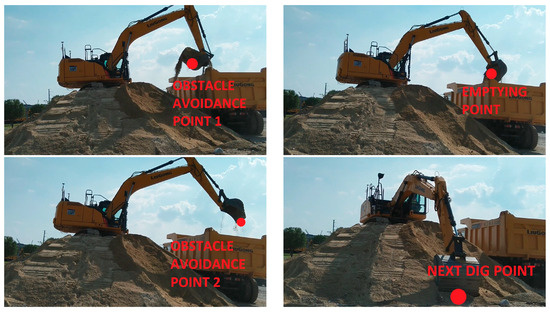 Similarly, the control points for trajectory generation of the arm joint, bucket joint, and swing joint can be obtained as illustrated below.