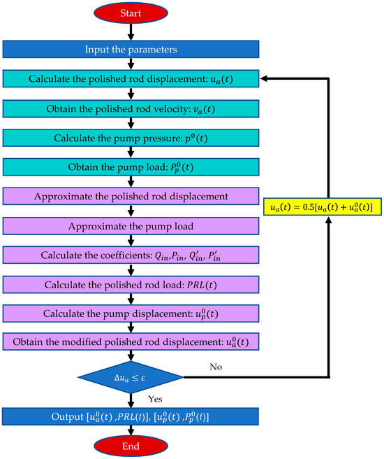 Step 3: Calculate the pump displacement up0(t) and the polished rod load according to Equation (9).