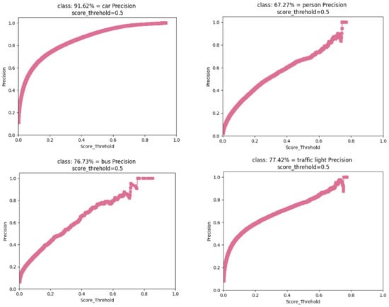 The precision diagram of car, person, bus, and traffic light under the score_threshold = 0.5.