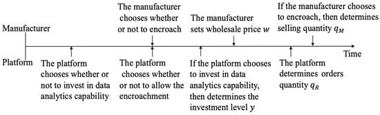 Our paper is mostly related to the rich literature on the channel structure of online retailing. Hagiu and Wright [26] considered the strategic choice between the reselling channel and the agency channel when the sellers and the platform can exert effort to incentivize demand. Abhishek et al. [27] examined a supply chain with a single manufacturer selling to two competing online retailers, each of whom has the option of choosing from one of the two selling formats. Kwark et al. [28] studied a similar issue but considered the impact of third-party information (such as product reviews). Tian et al. [29] demonstrated that the interaction between order-fulfillment expenses and upstream competition intensity moderates the choice of the most efficient mode for the online retailer. Jerath and Zhang [30] investigated the platform’s problem of selecting between the reselling channel and the agency channel for two competing manufacturers. Ha et al. [31] studied the impact of a platform’s service effort on a manufacturer’s decision to choose the distribution channel. Cao et al. [32] investigated the impact of the channel structure on an upstream manufacturer’s bundling incentive. Zhen et al. [33] studied the impact of pricing strategies on selecting the channel structure and the joint decision-making of channel structure and pricing strategy. Hong et al. [34] demonstrated that public information sharing leads to increased competition, whereas private information sharing tends to mitigate the competition. This study examines the case where the agency selling format and the reselling format exist simultaneously, that is the case when the manufacturer chooses to encroach. We analyzed how the data analytics capability investment of the platform affects the manufacturer’s encroachment decision.