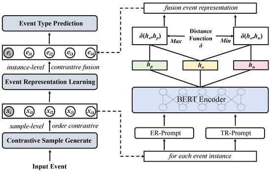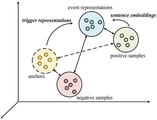 Contrastive learning is a self-supervised learning method. The core idea is to help the model learn high-quality feature representations by constructing contrastive samples. For event detection tasks, we aim to aggregate events of the same type together and separate events of different types as much as possible through contrastive learning. Logeswaran and Lee [27] regard the context of the target sentence as a positive sample. The dropout mask is proposed by Gao et al. [21], which uses the characteristics of the dropout layer to obtain the most similar contrast sample to the original sample. These methods only divide the samples into positive samples and negative samples. Zhang et al. [15] introduced homogeneous sample and heterogeneous sample, constructed ordered contrastive samples, and better distinguished different types by learning the partial order relationship of different contrastive samples.