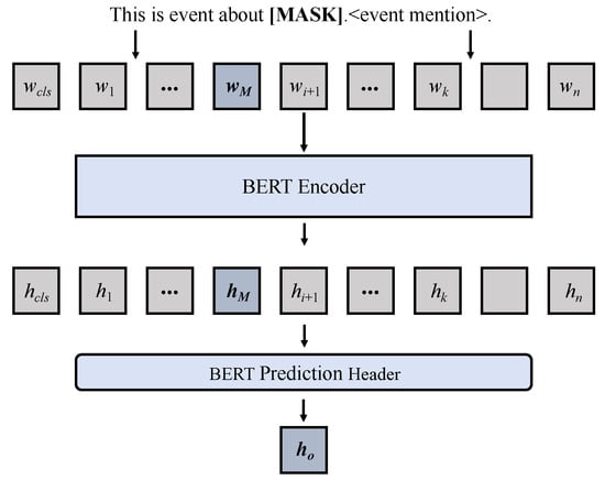 where and are the parameters of the prediction layer, and they are also part of the pretrained language model BERT. It should be noted that the triggers must be included in the event description text, and the BERT vocabulary as a solution space is far beyond this category, so we also need to define a conversion function. Specifically, this transformation function needs to adjust the predicted value of words that are not included in the event description text to 0: